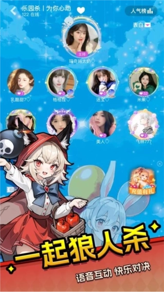 1、玩法丰富:乐园杀涵盖了多种多样的趣味玩法,能够满足不同用户通过在线交友来拓展朋友圈的喜好;