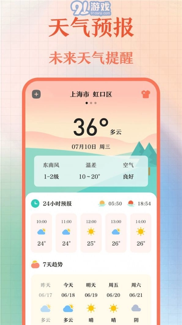 2.天气预报:为用户呈现未来多日的详细天气信息,帮助用户更合理地规划出行安排。