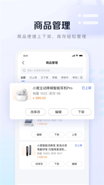 5、商品管理,商品便捷上下架,库存轻松管理。