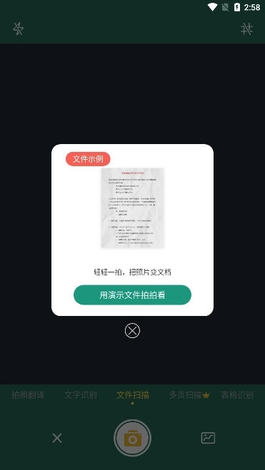 3、在主界面点击扫描按钮即可进入拍摄模式,此时需将镜头对准待扫描的文件,并保持画面稳定。