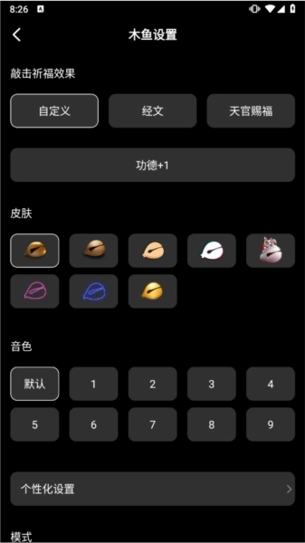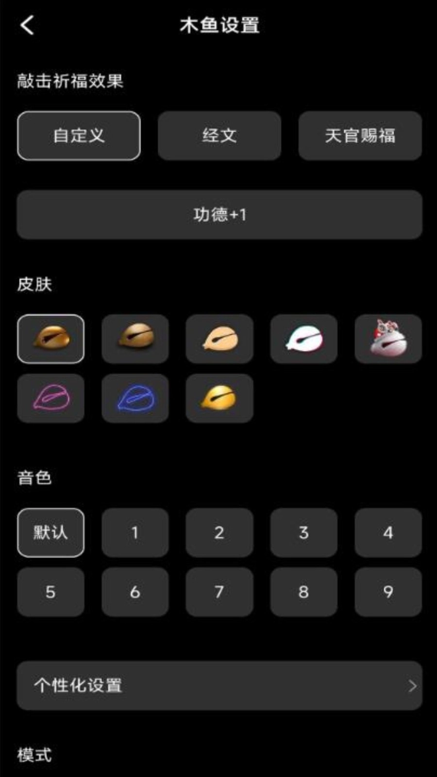 【专业音色】修心木鱼支持更换木鱼音色,10种音色可免费切换;