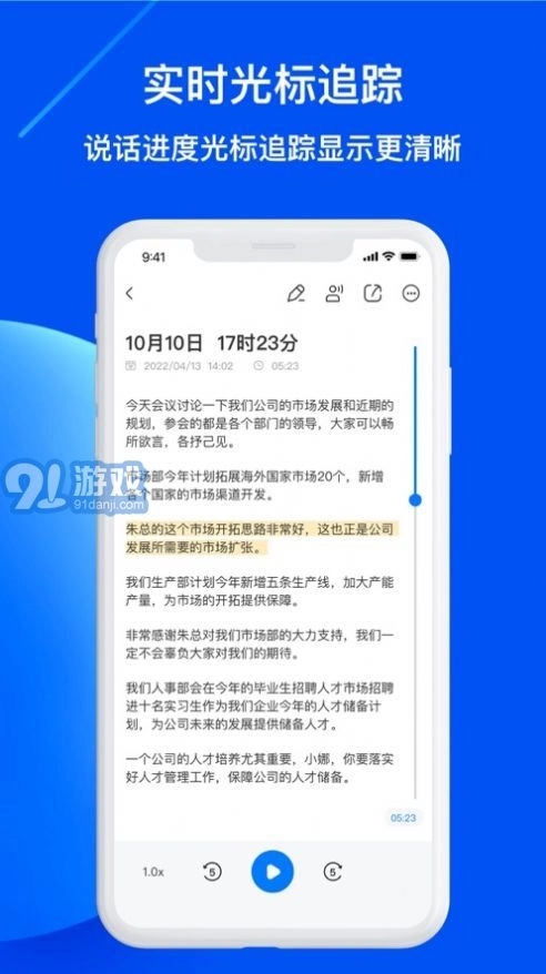 1.高效且精准的语音识别技术,可实时把录音内容转化成文字。