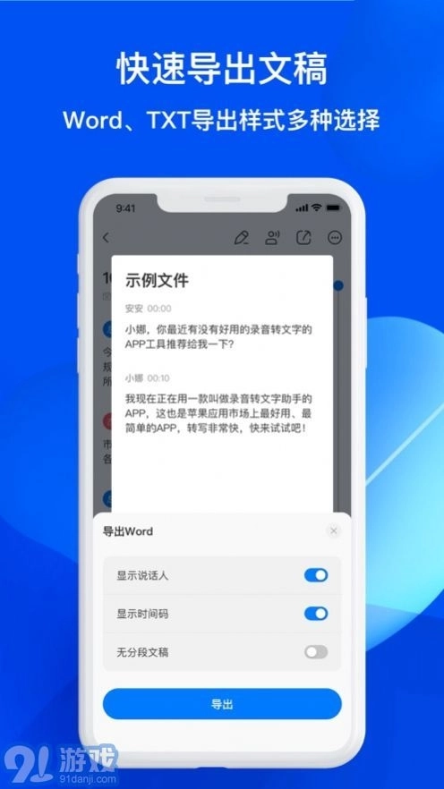 4.支持把转换好的文字导出成word、txt等多种格式,便于用户在不同设备和场景下使用。