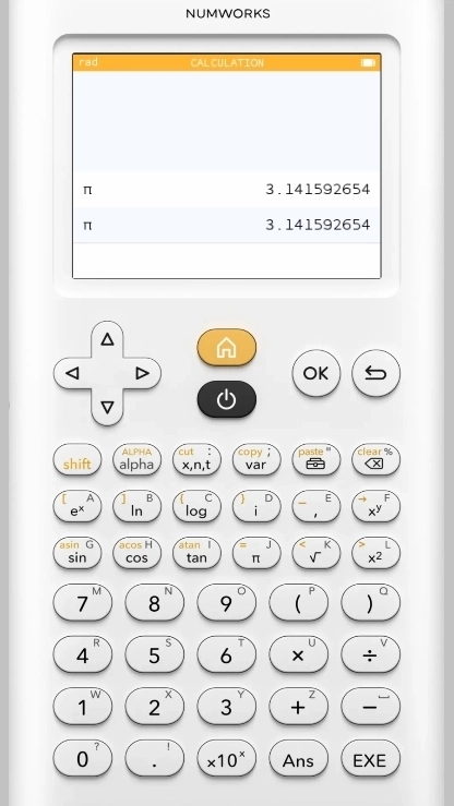 在NumWorks计算器里输入π的时候,得用近似数值3.1415926535,要是直接输入π这个符号,有可能会让程序出现死机的情况。