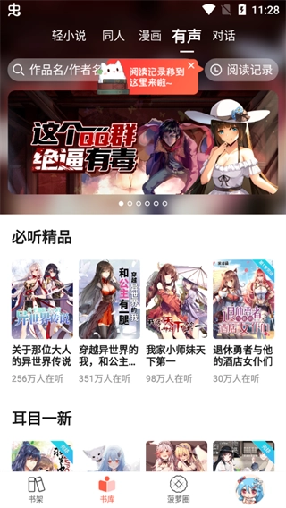 《绑来的老婆是仙子》《我的徒儿全是反派》《失业魔王》《修炼成仙的我只想养成女徒弟》《武林之王的退隐生活》这些作品都配备了专业男女CV进行配音,你可以解放双手,让耳朵沉浸在前所未有的听觉享受之中。
