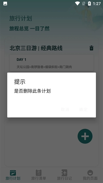 3、仔细确认行程名称准确无误后,点击“确认删除”按钮,系统便会着手清除该计划对应的行程安排以及相关联的预订信息。