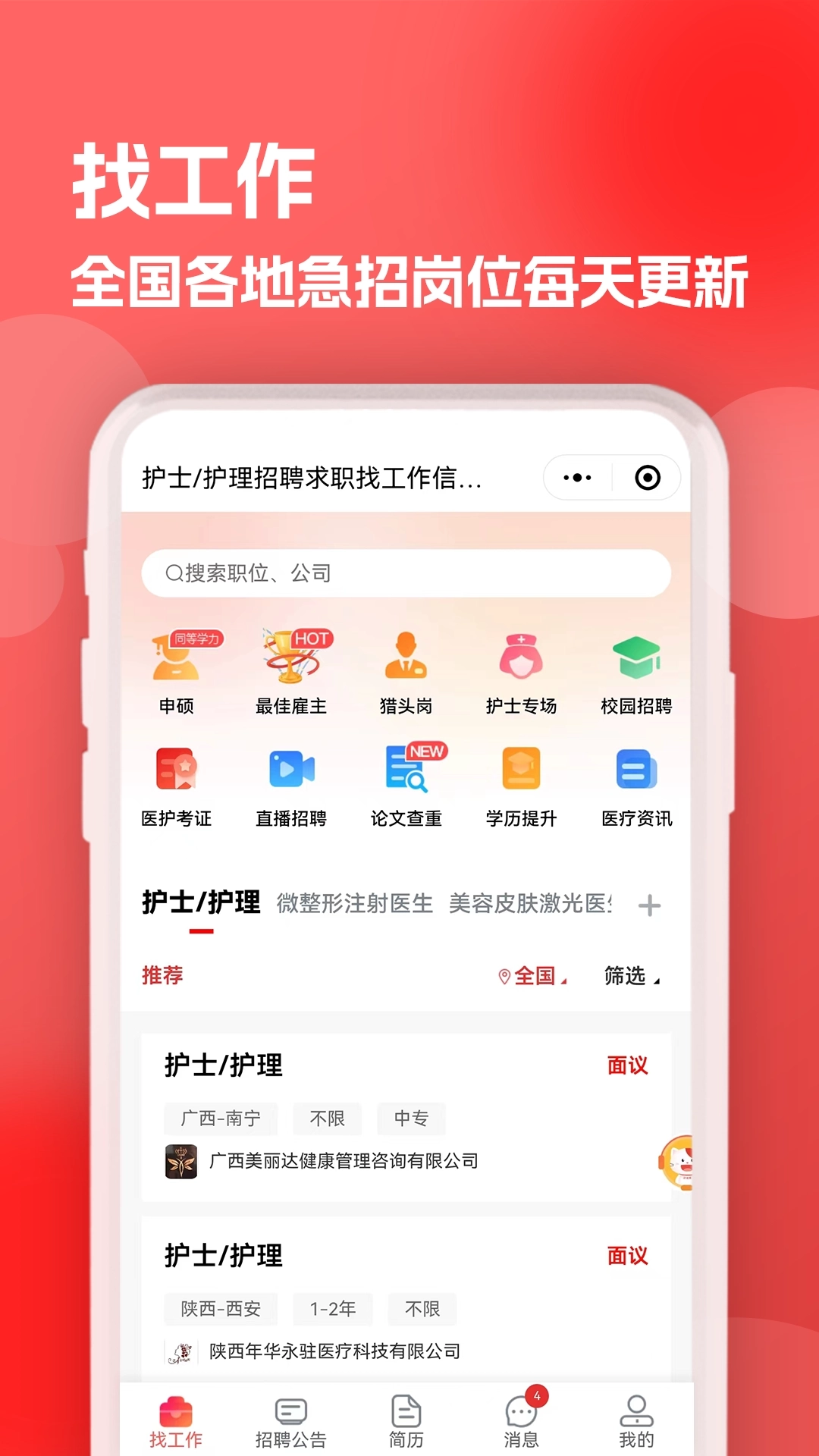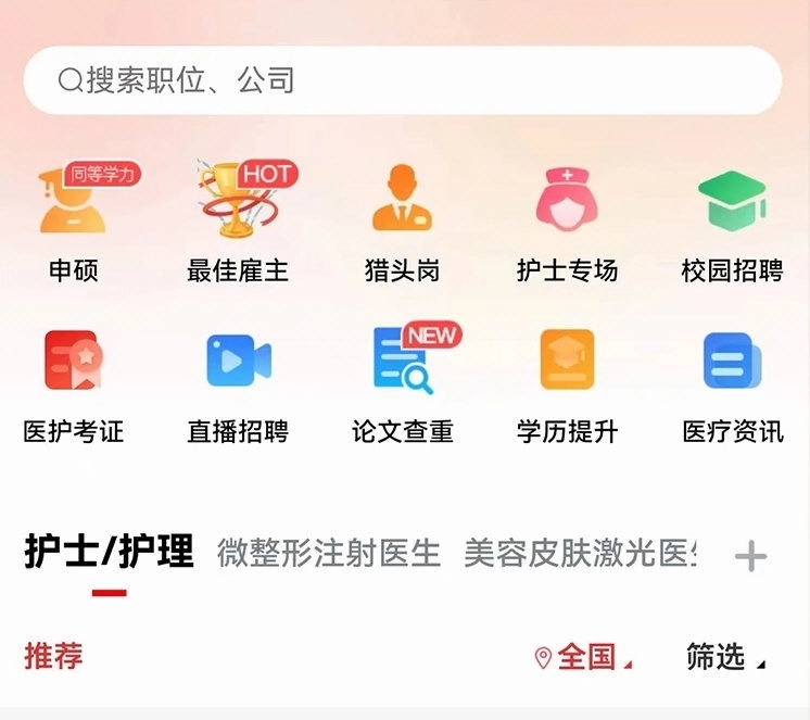 医聘猫是专注于医疗行业垂直领域的招聘平台,旨在为医疗机构、医疗企业与医疗专业人才构建高效精准的对接渠道。平台聚焦医疗行业招聘需求,覆盖公立医院、民营医院、社区卫生服务中心、诊所、医药企业、医疗器械公司、医疗科研机构等各类用人单位,同时服务医生、护士、药师、检验师、影像技师、医疗管理人员、科研人员、销售代表等全岗位医疗人才。