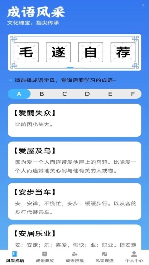 风采成语专注于开发一款融合知识性、趣味性和实用性的成语学习应用。该软件秉持“传承文化,启迪思维”的理念,借助科学的内容组织与新颖的交互模式,助力用户高效领会成语的核心内涵。不管是学生巩固语文根基,还是文化爱好者增进自身素养,都能在此获取适合自己的学习方案。