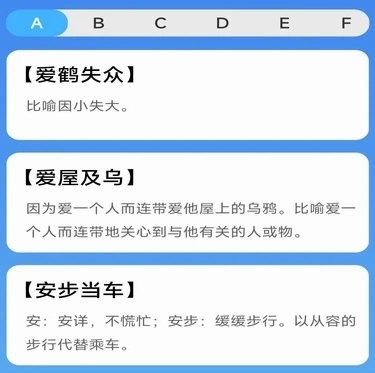 风采成语用心雕琢每一处学习环节,使成语学习摆脱枯燥的死记硬背,变身为一场跨越古今的文化探索。在这里,用户既能积累语言素养,还能触碰中华文明的肌理,领略汉语的别样韵味。不管是为应试积累,或是为心灵涵养,这款应用都能成为您手中的文化典藏,让成语智慧在当代生活里重焕光彩。