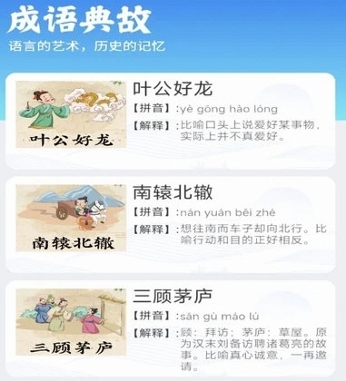 成语日历:每天为你推送一个成语,以及它所关联的节日、节气或历史事件。举个例子,在端午节时,会解析“粽横四海”这个成语蕴含的民俗意义。