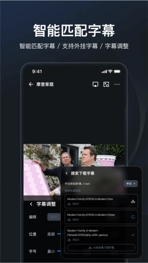 【智能匹配字幕】飞牛具备智能搜索影片字幕并自动匹配的功能,支持多语言字幕切换,还能添加字幕,同时可对字幕的字号、位置及时间偏移进行调整。