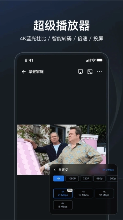 【超级播放器】借助飞牛服务的实时转码技术,可流畅播放4K、杜比及蓝光原盘内容。这款功能强大的播放器还具备TV投屏、倍速播放、视频码率调节、音频设置调整、画面比例适配等实用功能。