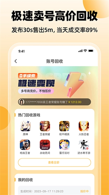 闲置账号一键上架,智能验号AI截图,发布30秒成交5分钟,当日售出率高达89%,提供一条龙代售服务省心省时省力,极速变现秒提到账,交易手续费更低。平台高价回收,上百家回收商公开竞价,目前更有0元手续费活动等您参与。