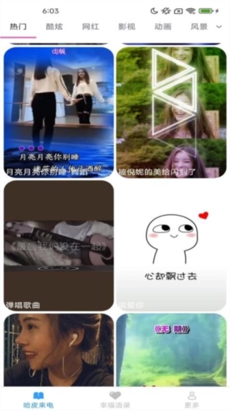 1、我们拥有不断更新的海量高清视频来电秀资源库,涵盖潮流萌宠、炫酷科技、唯美风景等各类风格,使每一次来电都能带来愉悦的视觉体验。
