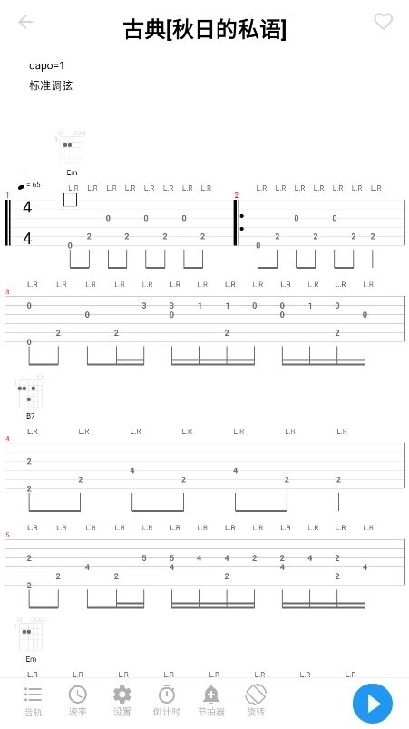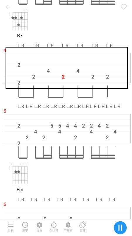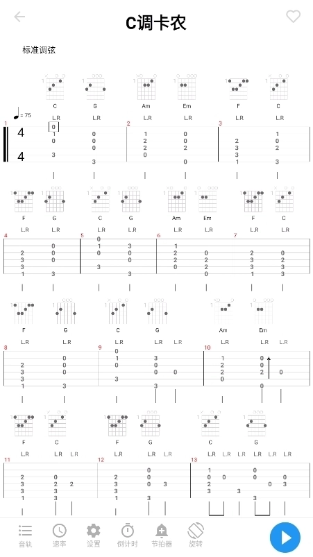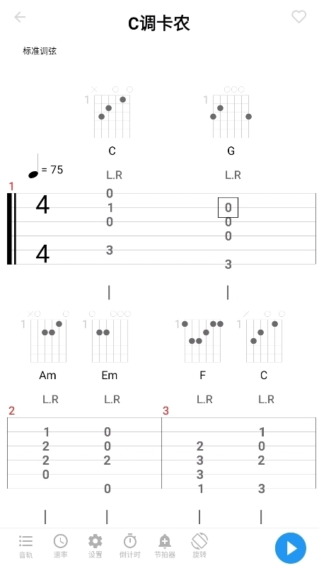 用户能够跟着音频开展练习,与此同时留意谱面上的和弦与指法。