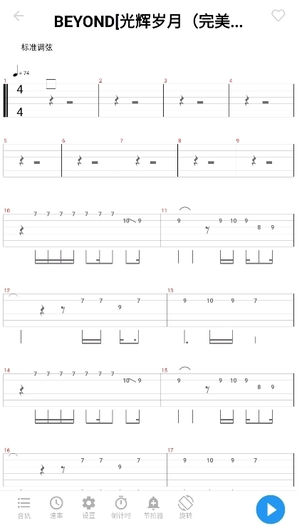 点击谱面下方的播放按钮,应用就会自动播放该吉他谱对应的音频。