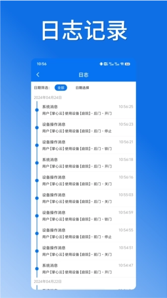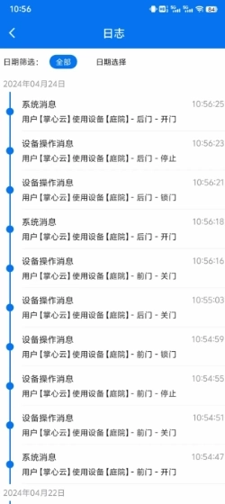 用户可以查看各款智能门锁设备的全部使用日志,了解全天时段内智能门锁的使用情况。