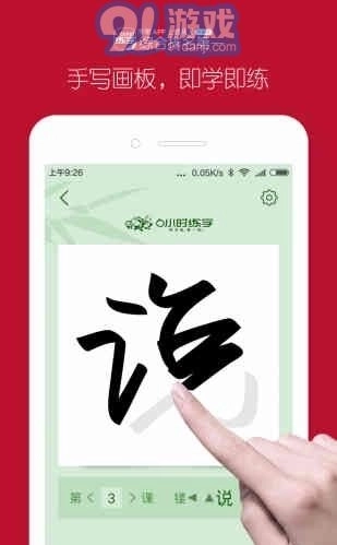 2.开始练习:选好字帖后,用户就能依照字帖上的字形着手书写练习。应用会即时辨认用户的书写笔迹,进而给出反馈和指导。