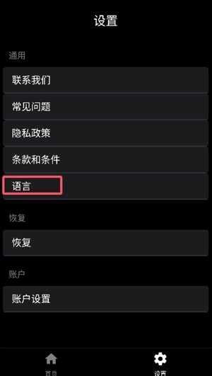 5、找到语言相关设置选项,点击进入后,在弹出的下拉列表里选择【中文】,待切换操作完成,即可成功将语言设置为中文。