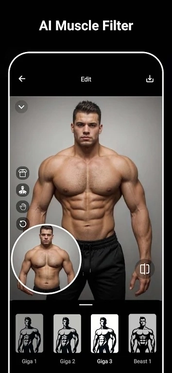 GigaBody聚焦于健身效果强化与瘦身效果预览,不具备其他类型的图像编辑功能。用户应当清楚它的定位是娱乐工具,而非专业的修图软件。