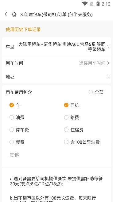 然后补充乘车人数、是否需要配备司机;若选择带司机服务,可备注对司机的服务要求,例如是否需要协助规划路线、是否提供简单接待服务等。