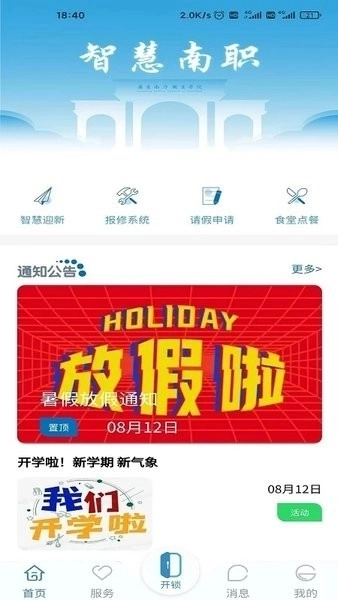 这款应用具备智慧迎新、故障申报、外出请假等多项功能。借助智慧迎新,新生能轻松完成入学手续办理,还可查找校园各处地点、知晓学校相关信息。而故障申报功能则支持学生迅速反馈校园设施的各类问题,像教室设备损坏、网络出现故障等情况,方便校方及时进行修复处理。