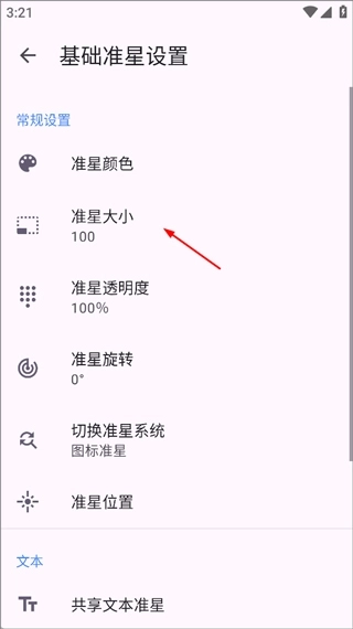 1、先打开准星精灵应用,进入主界面后向下滑动页面,找到“基础准星设置”选项。