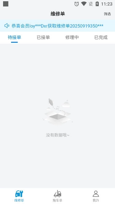 增加订单推送功能,并在维修单、拖车单顶部新增最新订单获取情况的展示。