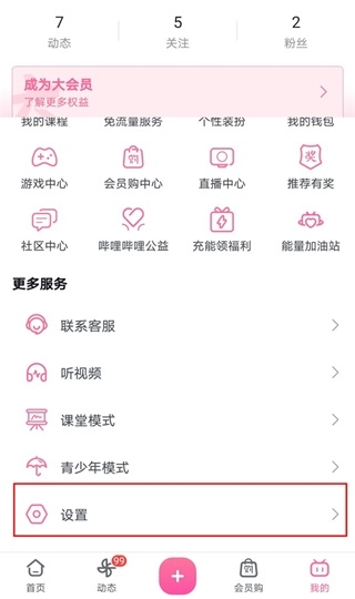 1、首先打开哔哩哔哩个人中心,点击设置。