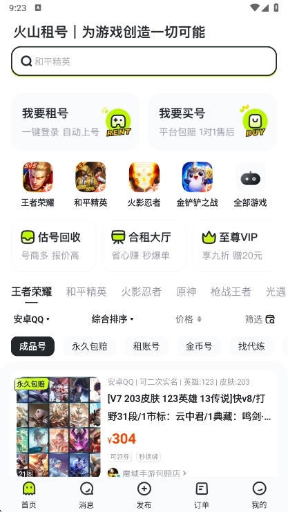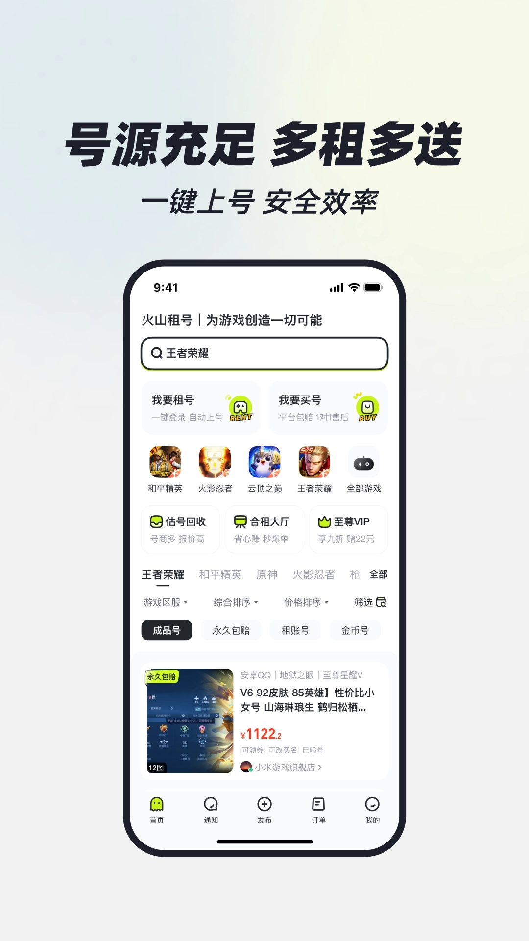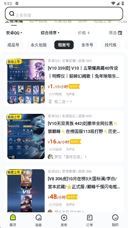 专区租号超便捷:玩《王者荣耀》《和平精英》,租个满级账号,轻松带飞队友。
