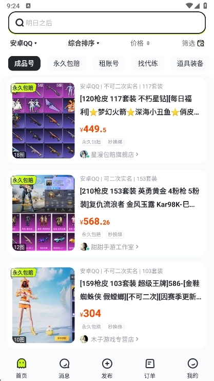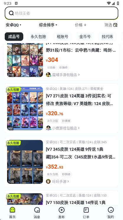 可以按照游戏区服、价格以及账号品质(比如“全英雄账号”“满级皮肤号”等)进行筛选,轻松找到自己喜欢的账号。