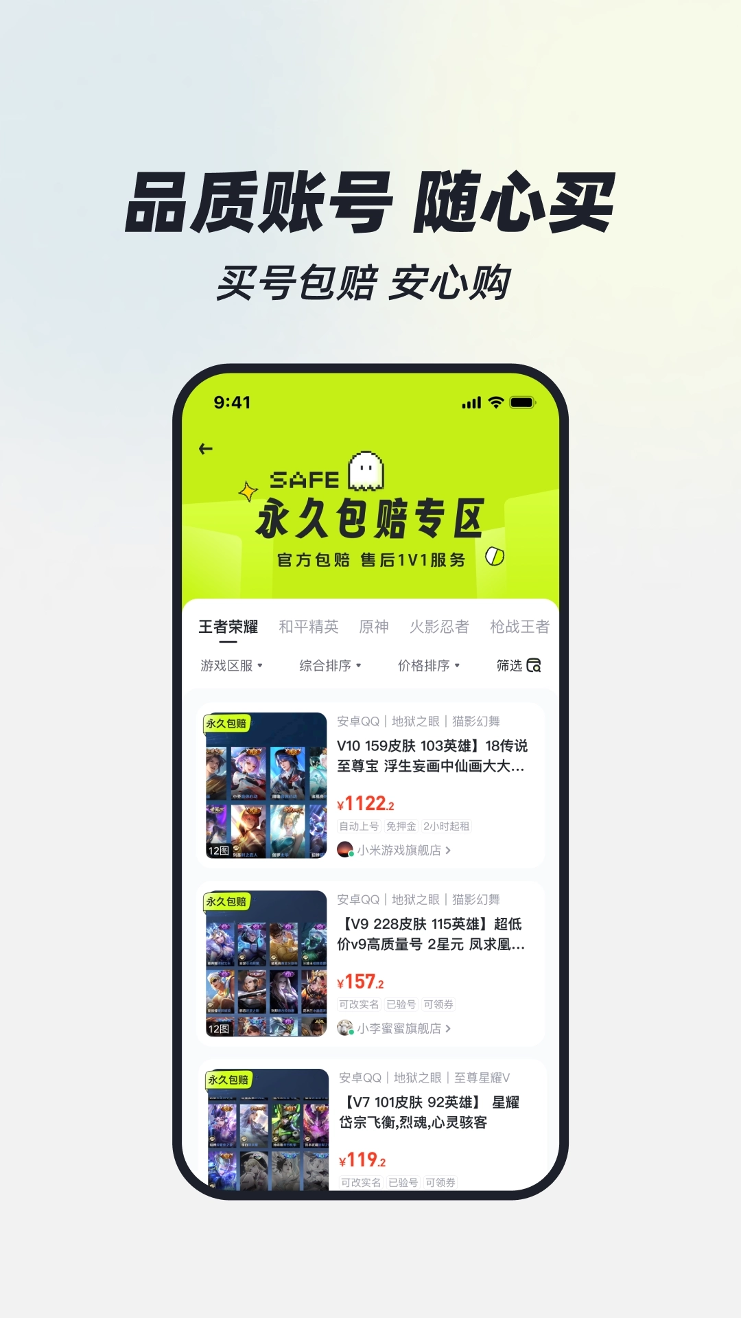 筛选账号:可依据价格、区服以及账号品质(例如“全英雄”“满皮肤”等)进行筛选,从而找到符合心意的账号。