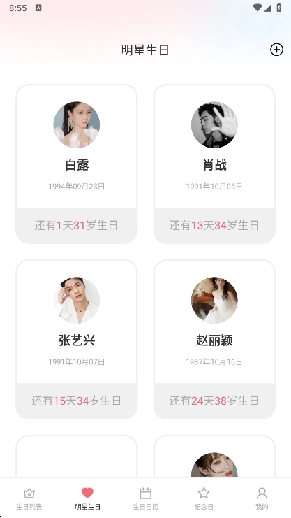 【明星生日】这款产品会为用户呈现当下热门明星与爱豆的生日信息,还设有生日倒计时功能,能满足少男少女们的追星需求。