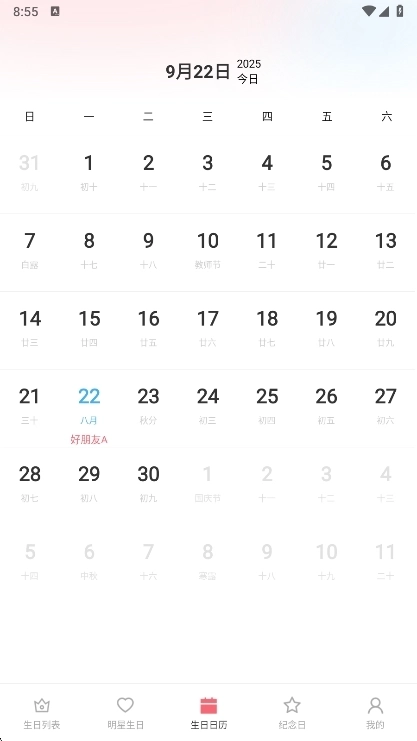 用户可以自由添加各类重要日期,本产品还贴心支持农历日期设置,让每一个值得纪念的生日与特殊纪念日都能被精准记录、尽在掌握。