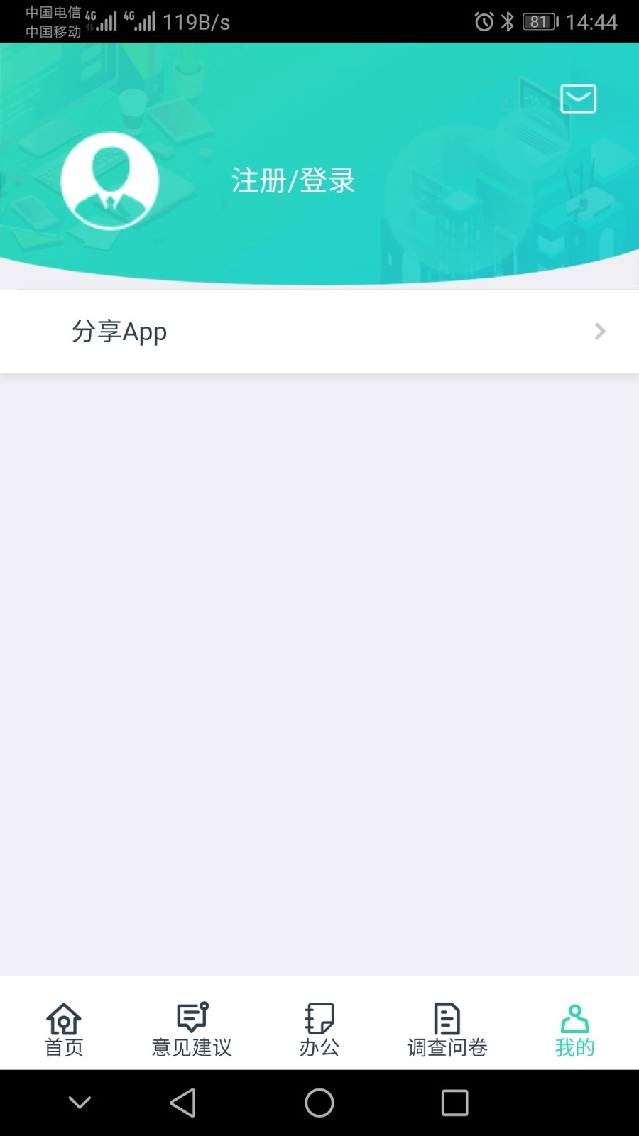 3、也是可以在我的页面板块完成注册登录操作
