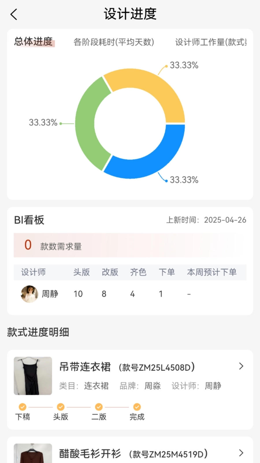 6、借助直观的数据看板,用户能够便捷掌握款式整体的设计进度,保障项目如期推进。