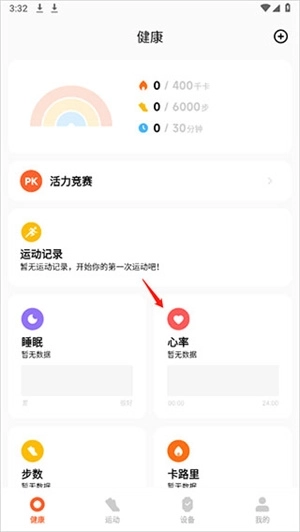 1、进入首页,点击心率