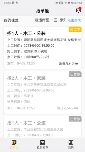 修改自己的住处信息,就能及时获取附近的装修订单。
