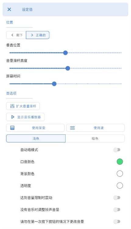 调整控件在屏幕上停留的时间,达到音量限制时振动。