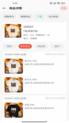 查看库存详细情况,可随时对商品库存数量进行调整,还能设置库存预警的阈值。