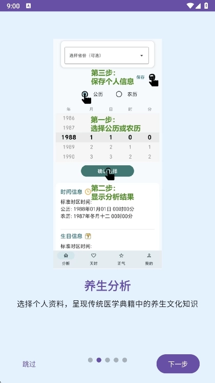 首次开启“体质辨识”功能时,系统会自动弹出操作指引,帮助用户顺利完成测试流程。