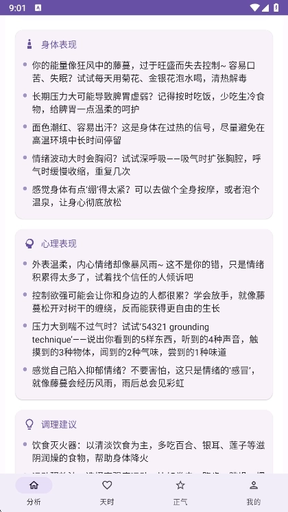 体质辨识:借助问答测试来判定用户的体质类型,像气虚、痰湿、血瘀等都包含在内,进而为用户制定出个性化的养生方案。
