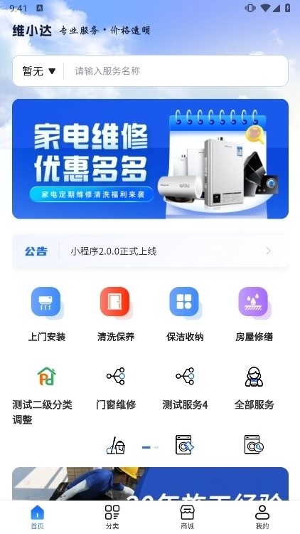 【房屋修缮服务】包含墙面、瓷砖、石材、吊顶、门窗的维修项目,同时提供适老改造服务。