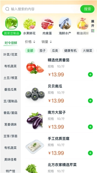 平台为用户提供了详细的产品分类,涵盖时令尝鲜、有机蔬菜、土豆等品类。