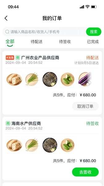 4、最后,能够在线对所有采购订单进行管理,通过查看订单信息来掌握配送进度;