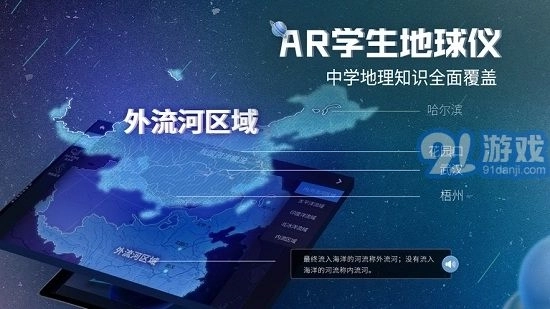 3.借助AR技术,把地球仪上的地理信息和真实场景融合起来,展现出立体且动态的视觉效果。