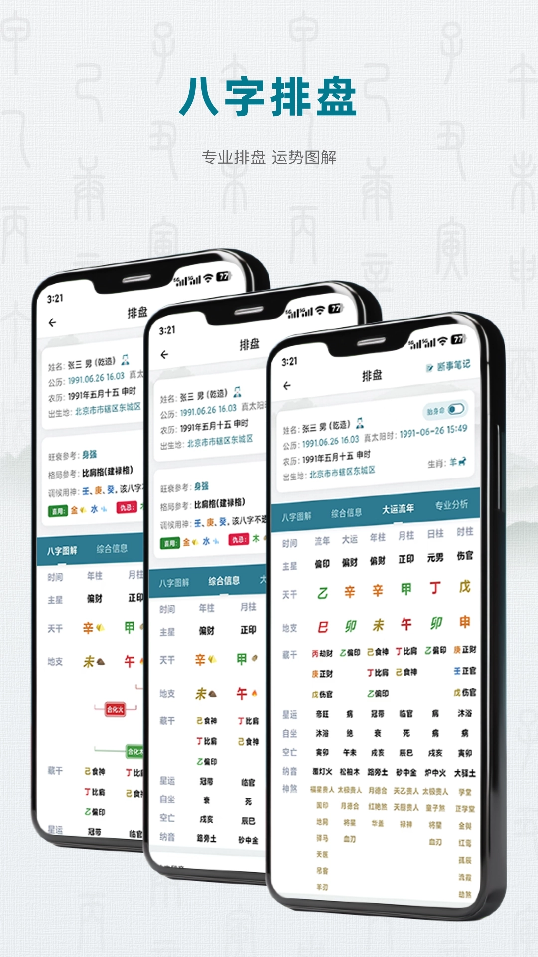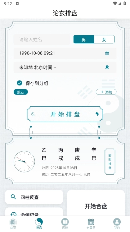 排盘:首页点击“八字排盘”→输入出生信息→生成命盘→查看分析。