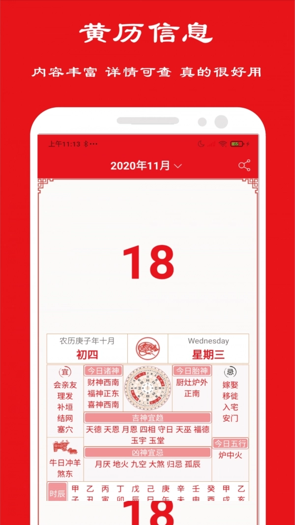 1.黄历信息查询:用户能够通过该软件便捷地查看每日黄历内容,涵盖宜做与忌做的事项、各个时辰的吉凶情况等信息。