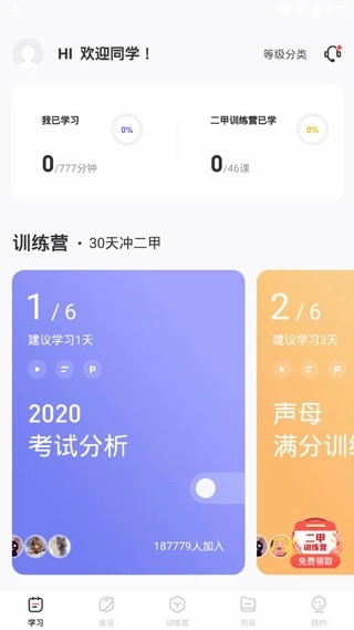 2、智能化学习系统:借助智能化的学习系统,依据用户的学习进度与水平,智能推送适配的学习内容及练习题,助力用户高效提升普通话水平。