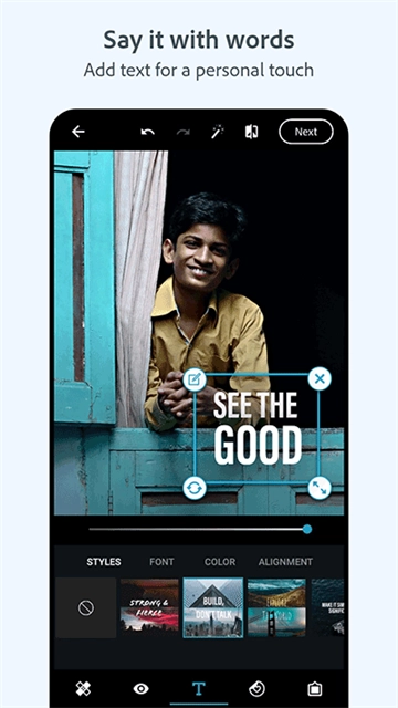 ps软件是Adobe公司为终端用户开发的图片编辑工具,专门为Android用户提供了便捷高效的图像处理功能。它具备裁剪、旋转、色彩调整、滤镜应用、文字添加等丰富功能,用户通过拖动、缩放就能直观调整图像的尺寸与位置,也能借助各类滑块精细调节亮度、对比度、饱和度和色调。此外,软件还包含去除红眼、修复图像瑕疵、添加边框等进阶功能,助力用户精准掌控图片编辑效果。同时,它支持一键分享至社交媒体平台,也能直接保存到图库,方便用户快速分享自己的编辑成果。感兴趣的朋友不妨体验一下!